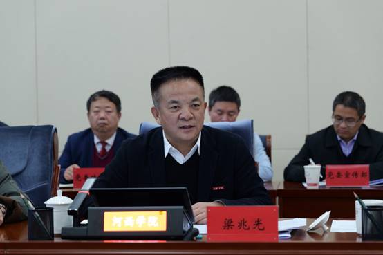 梁兆光在讲话中代表河西学院两万余名师生向张掖市委、市政府、市人大、市政协多年来对学校全天候的关心、全方位的支持表示诚挚的感谢和崇高的敬意。他指出,学校将全面落实好座谈会内容,持续深化校地合作,一是感恩奋进,全面落实立德树人根本任务。以张掖市全体领导到学校调研指导工作为契机,勇担强国使命,聚力内涵发展,力争做服务发展的先锋,在河西作贡献;做特色办学的先锋,在西北找位置;做教育开放的先锋,在丝路建名校。二是同题共答,全力推进高质量内涵式发展。充分发挥高校服务地方的职能,推进学校与张掖市的深度合作,校地同向发力,争取政策资金支持,推进学校部省共建,使“掌上明珠”熠熠生辉。三是深化校地协作,共同书写教育强国新篇章。学校将发挥专业优势和人才优势,着力支持张掖专业人才建设、民族地区人才培养,推动地方和高校实现的深度融合与协同发展。引导毕业生在张实习和留张就业创业,让张掖市成为毕业生就业、幸福创业的首选地和安家地。四是积极主动融入,不断增强服务地方经济发展能力。学校将持续深化教育教学改革,加快学科专业优化调整,不断增强学科结构布局与地方产业结构的契合度、学科人才队伍与地方智力资源的耦合度、学科育人成效与地方产业需求的精准度,在推进生态文明建设、农业农村现代化、工业规模壮大、文旅产业发展等方面全力提供支持,形成校地共建共享共生的良好生态,推动张掖经济社会全面发展,奋力谱写中国式现代化甘肃崭新篇章。