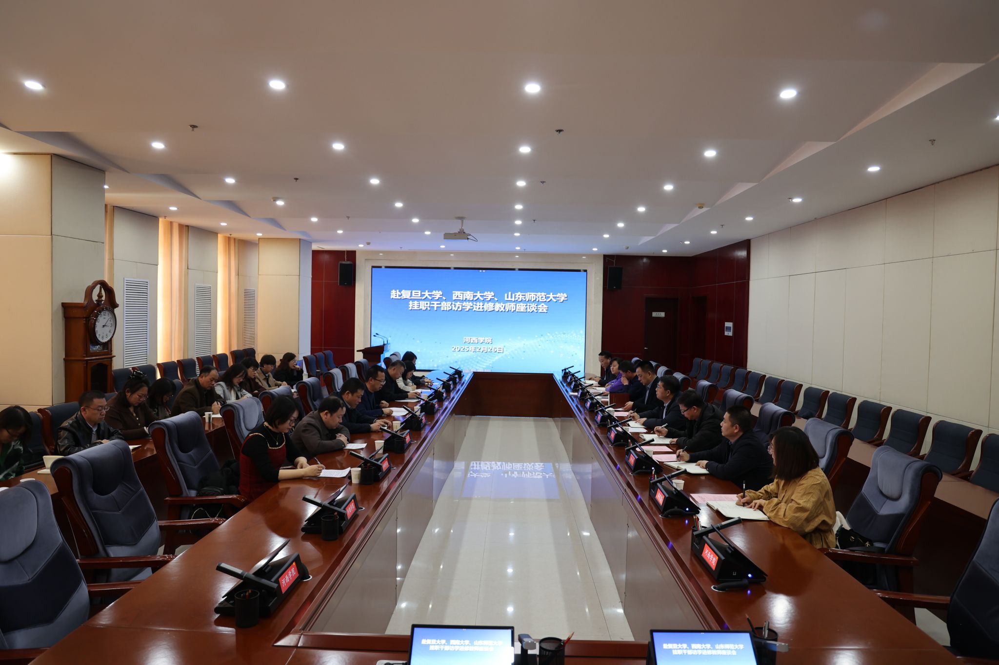 2月26日,学校召开赴复旦大学、西南大学、山东师范大学挂职干部访学进修教师座谈会。党委书记梁兆光出席会议并讲话。