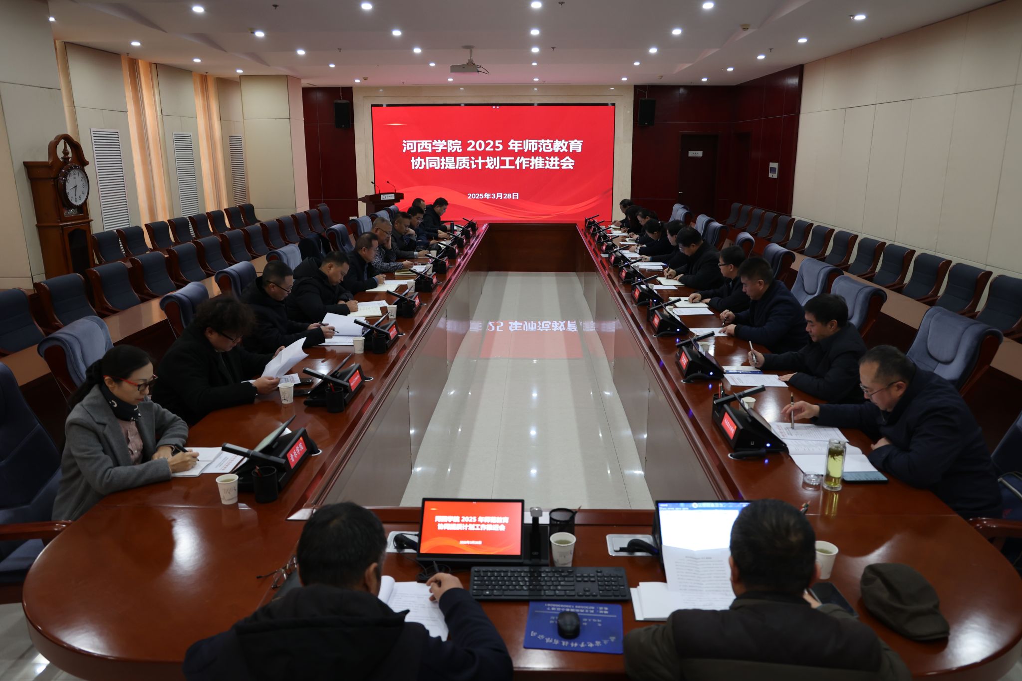 会议安排了2025年重点工作任务,通报了联合培养学生学习情况和专项经费使用情况;相关二级学院及职能部门负责同志围绕协同提质计划工作开展情况、师范类专业“一对一”帮扶建设计划推进等工作进行了交流发言,全面梳理了计划实施过程中遇到的问题,并从政策支持、资源配置、工作机制等方面提出了针对性的意见与建议。