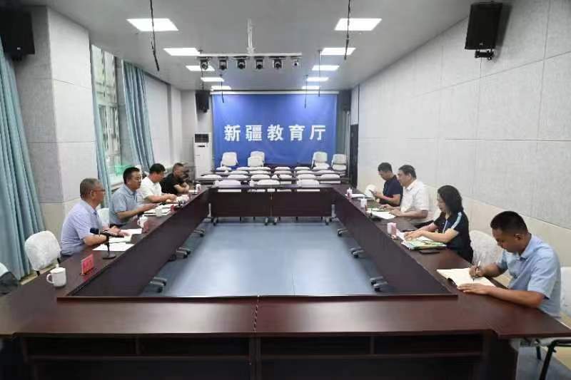 8月22日下午,党委书记梁兆光、副校长高荣带队走访新疆维吾尔自治区教育厅和生产建设兵团人社局,汇报学校服务新疆工作,听取对学校赴疆实习支教、留疆就业、人才培养的意见建议,推进新时代深化服务新疆工作。自治区教育厅党组成员、副厅长海拉提,兵团人社局党组成员、副局长韩永江,兵团团委副书记孟利及相关部门负责人会见梁兆光一行并座谈交流。